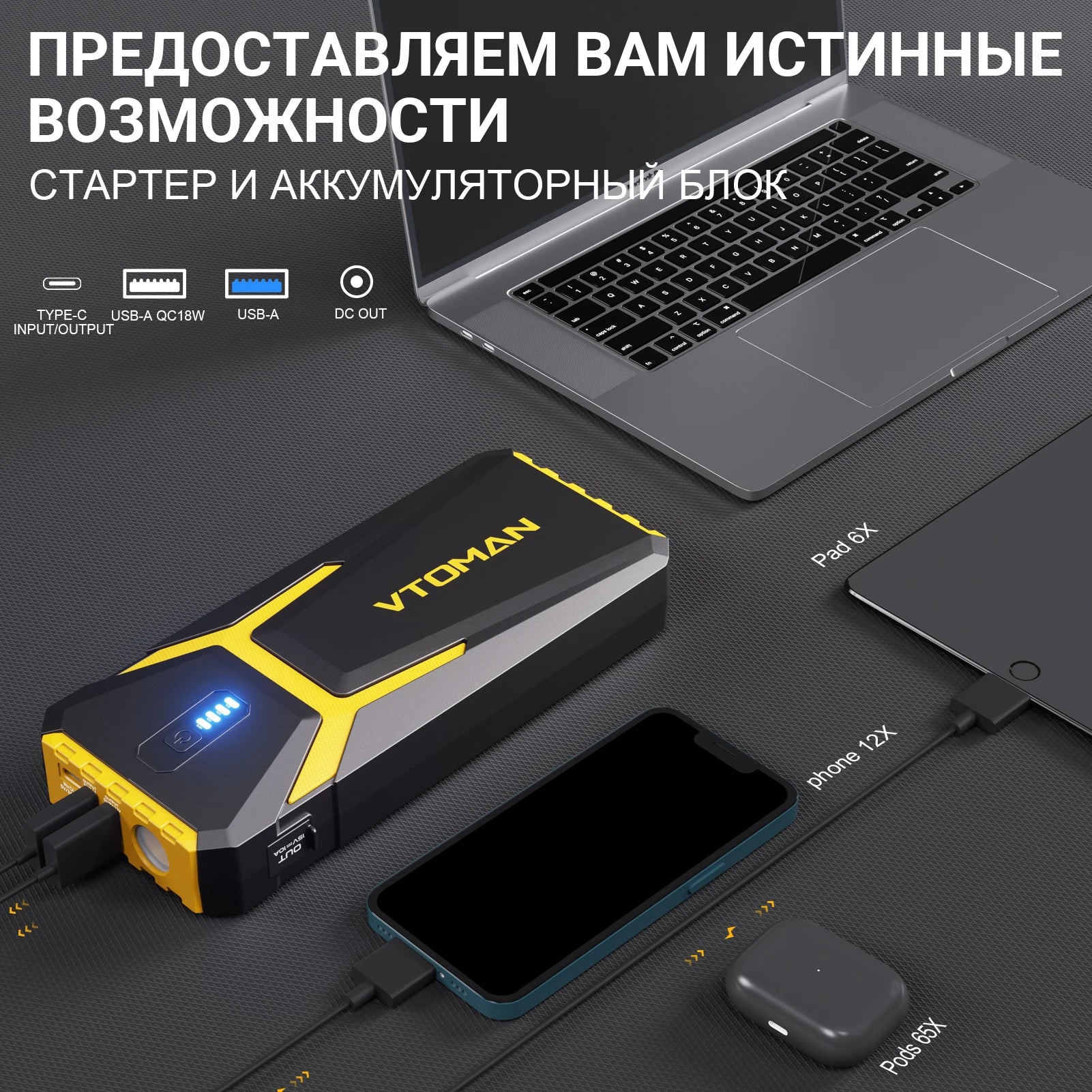 4500A便携式汽车应急启动电源,带20000mAh电池组和紧急充电宝