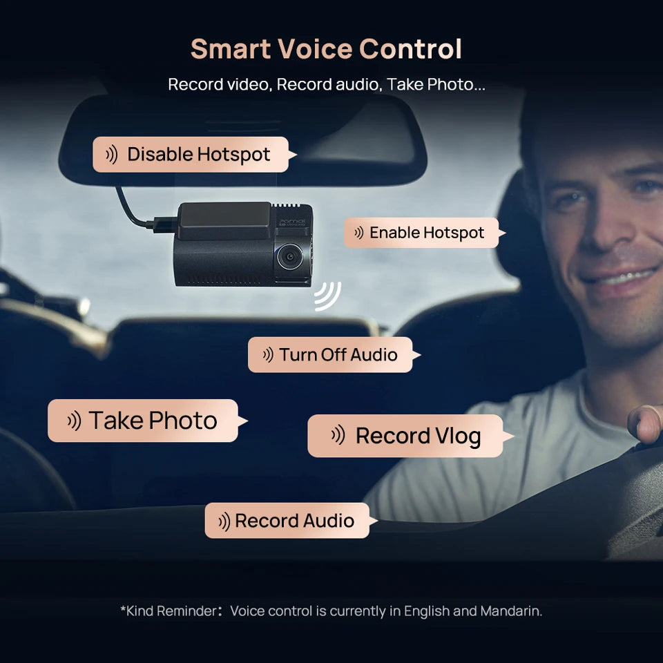 使用简单的语音命令操作您的行车记录仪,无需将手从方向盘上移开。